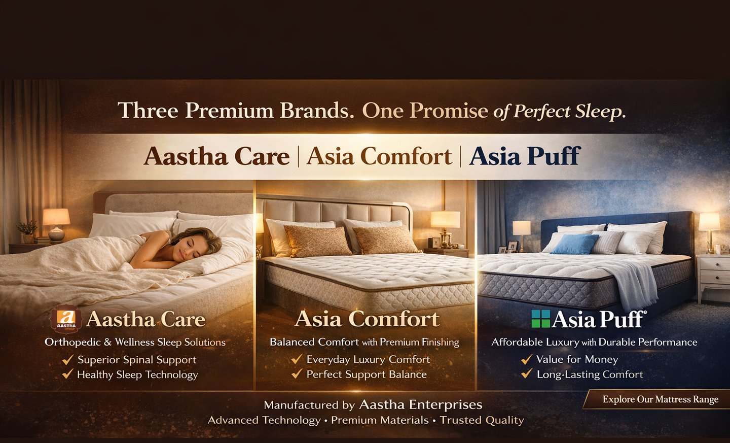 Aastha Enterprises was founded with a simple yet powerful belief β quality sleep is essential for a healthy life. The journey began with a clear vision to manufacture mattresses that combine comfort, durability, and affordability, without relying on middlemen or inflated showroom pricing.
