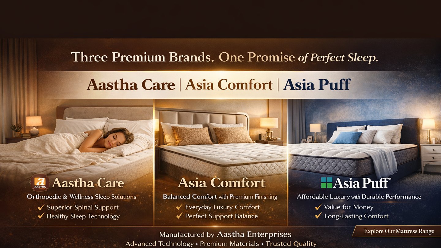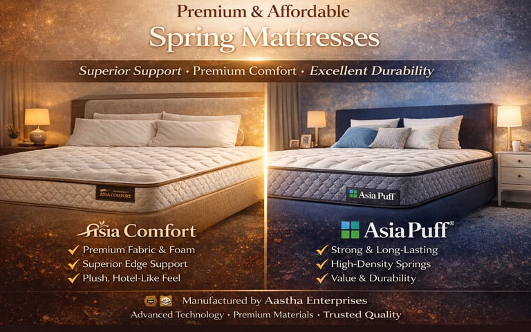 At Aastha Enterprises, we welcome customers to visit our manufacturing unit and design their mattress exactly the way they want. From comfort level and thickness to material and fabric, every mattress is custom-made at our factoryβwithout showroom markups or middlemen.